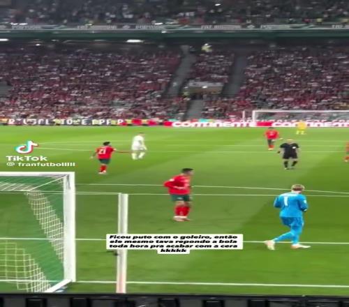 C罗主动摆球并贴脸鼓掌催促凯莱赫发球,后者竖大拇指回应