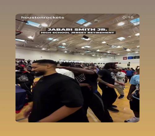 全队出席小贾巴里史密斯高中球衣退役仪式!火箭队内气氛没谁了