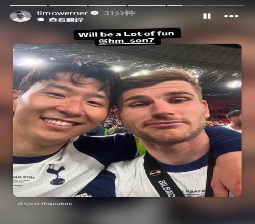 在社交媒体上,维尔纳晒出了和热刺队友孙兴慜夺得欧联杯冠军的合照,并写道:会有很多有趣的事发生。